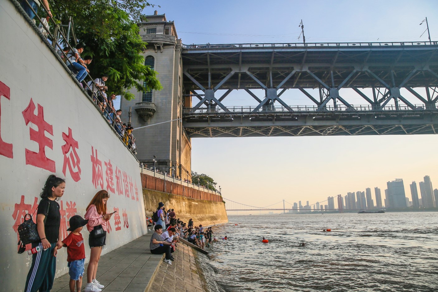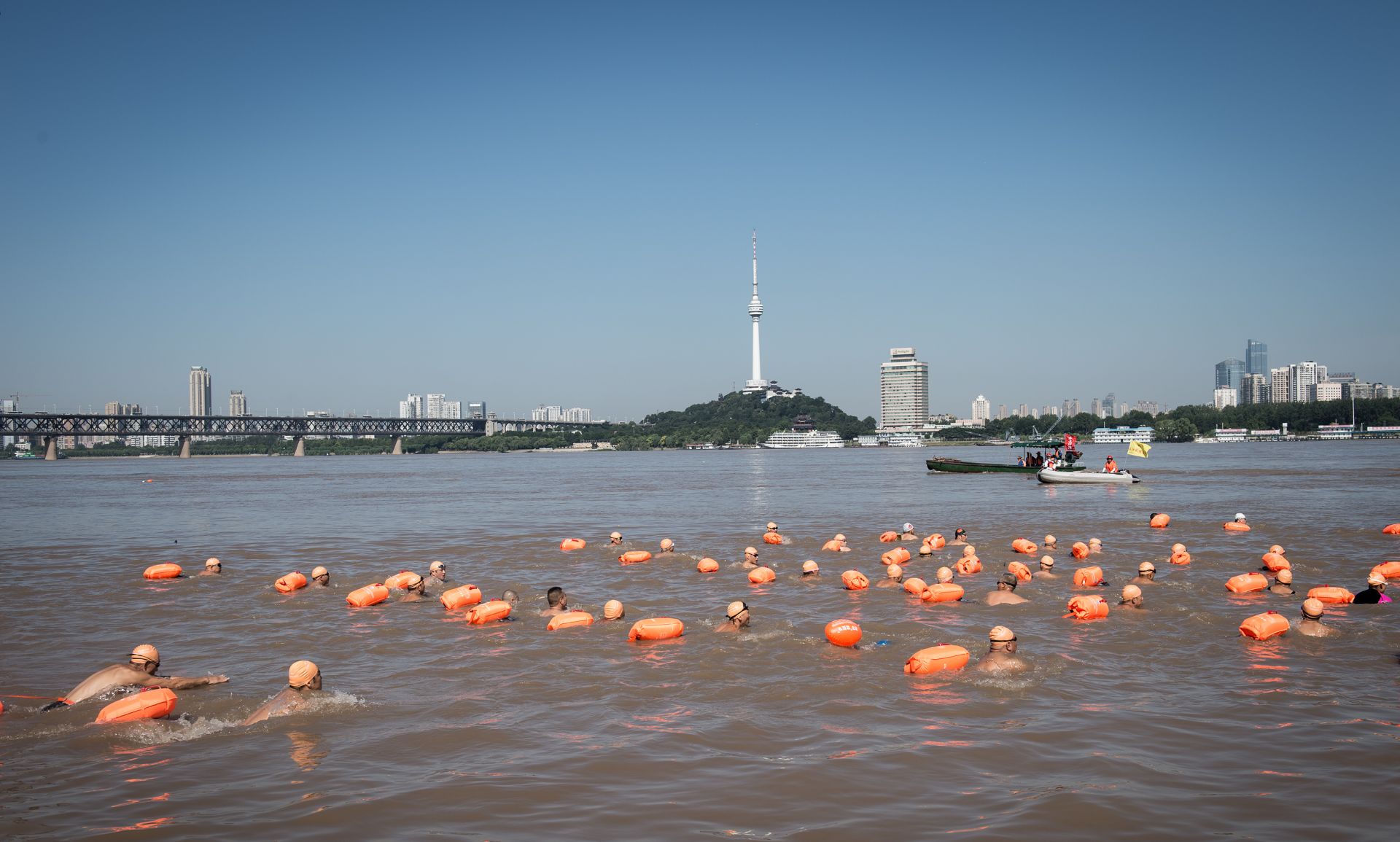 2017年武汉国际渡江节。照片中可见对岸的蛇山及电视塔。